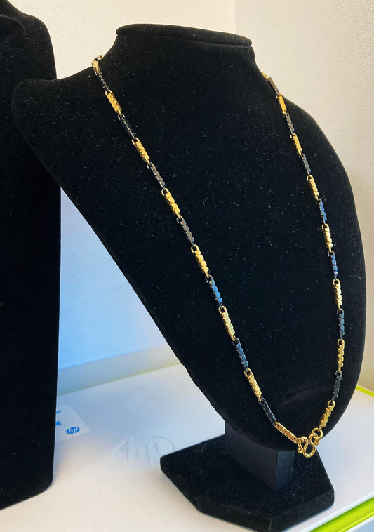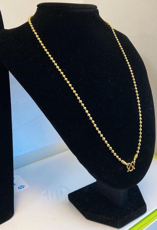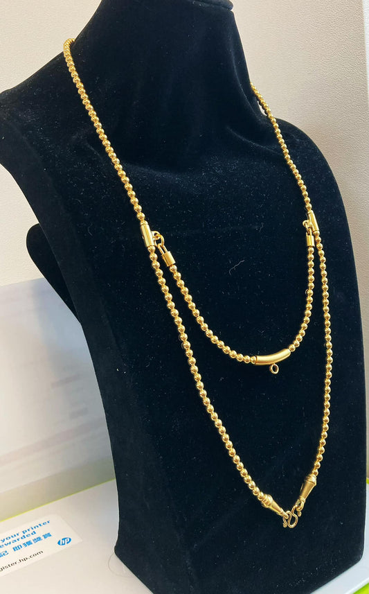 象牙白間不銹鋼金珠鑽貼前3後1佛牌鏈