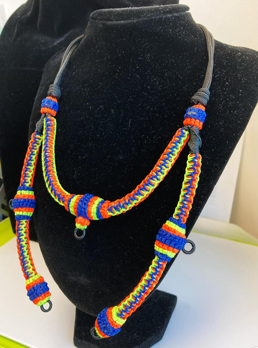 伸縮蠟繩前6後1開口佛牌鏈(8隻黑鋼扣)