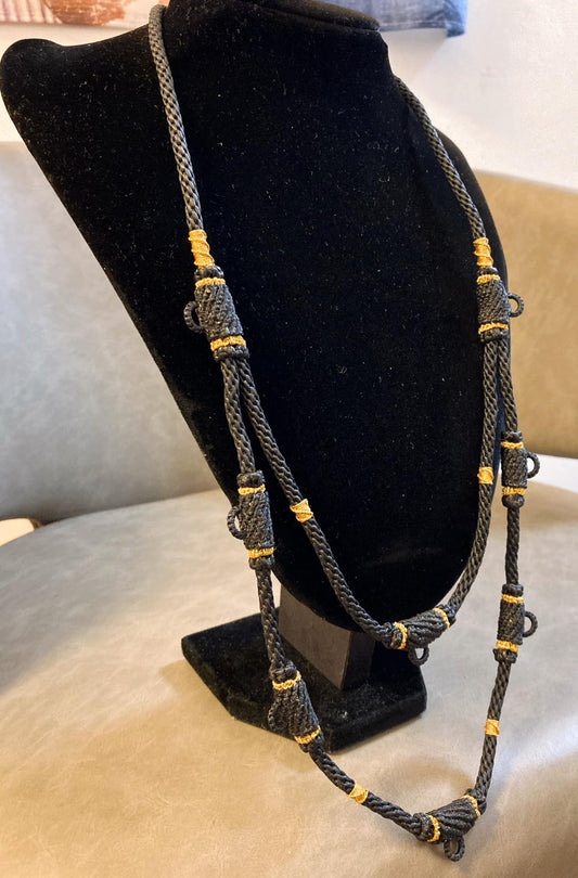 前6後2開口蠟繩佛牌鏈(黑鋼扣)